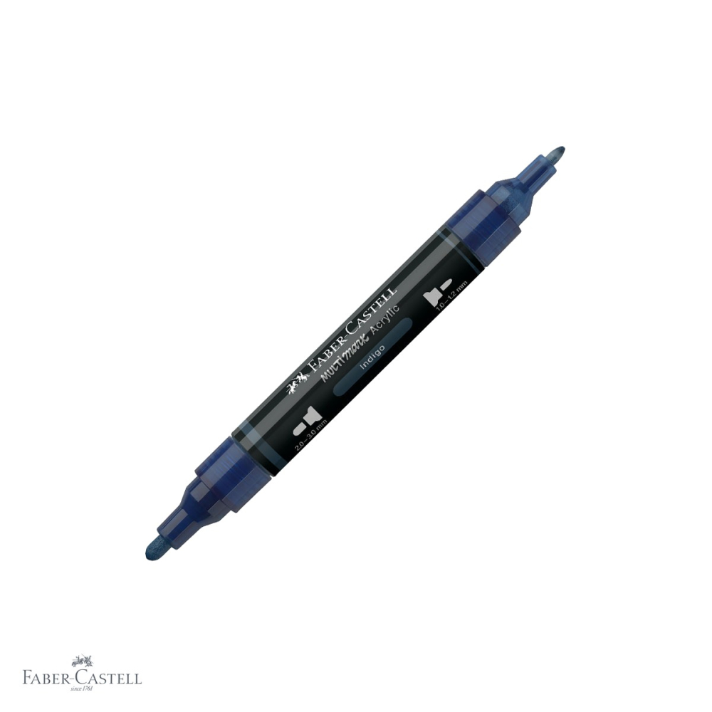 Marker acrilic Faber-Castell Multimark, culoare indigo 450, varf dublu, pentru multiple suprafete