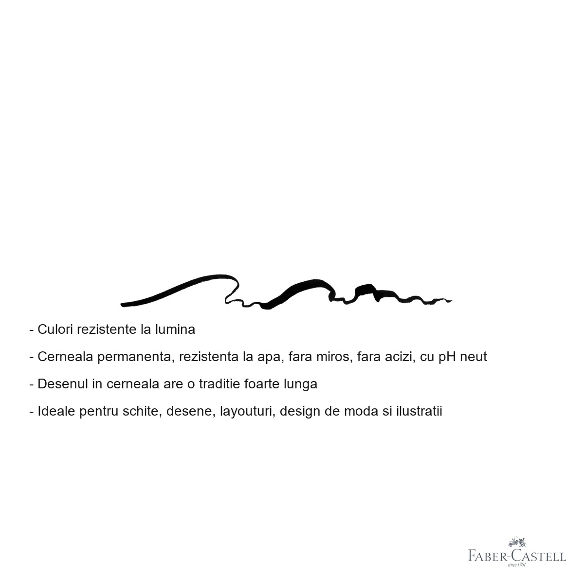 Cerneala pigmentata india folosita in Pitt Artist Pen ofera culori intense si rezistente la lumina, ceea ce inseamna ca lucrarile isi pastreaza aspectul in timp, fara sa paleasca. Caracterul permanent si rezistenta la apa a cernelii permit suprapunerea altor tehnici umede (acuarele, laviu) fara riscul de a murdari sau de a dilua liniile deja trasate. Faptul ca cerneala nu se transfera prin hartie este un avantaj major atunci cand se lucreaza in carnete sau blocuri de desen cu foi subtiri. Absenta mirosului si a acizilor face ca acest marker sa fie placut de utilizat in spatii inchise si sigur pentru lucrarile pe termen lung. Varful flexibil de tip pensula este un element distinctiv al gamei Pitt: acesta se adapteaza presiunii aplicate, permitand realizarea de linii subtiri si precise, dar si de tuse late si expresive, similar unei pensule traditionale. In plus, varful isi pastreaza forma dupa utilizare repetata, garantand consistenta rezultatelor.