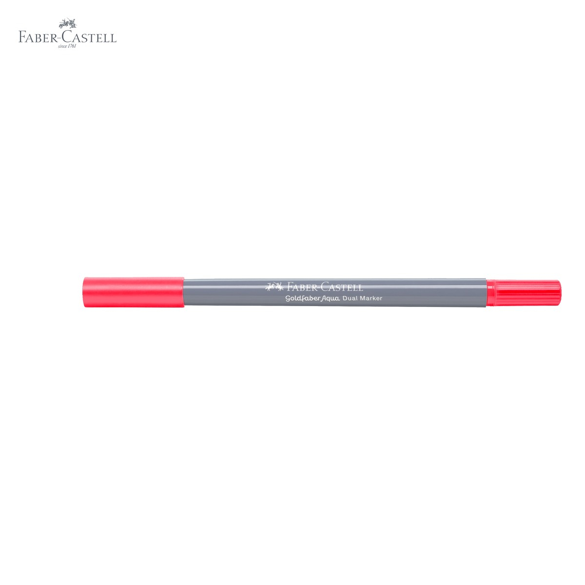 Marker solubil 2 capete Faber-Castell Goldfaber, varf pensula si varf fin 0.4 mm, rosu aprins 122