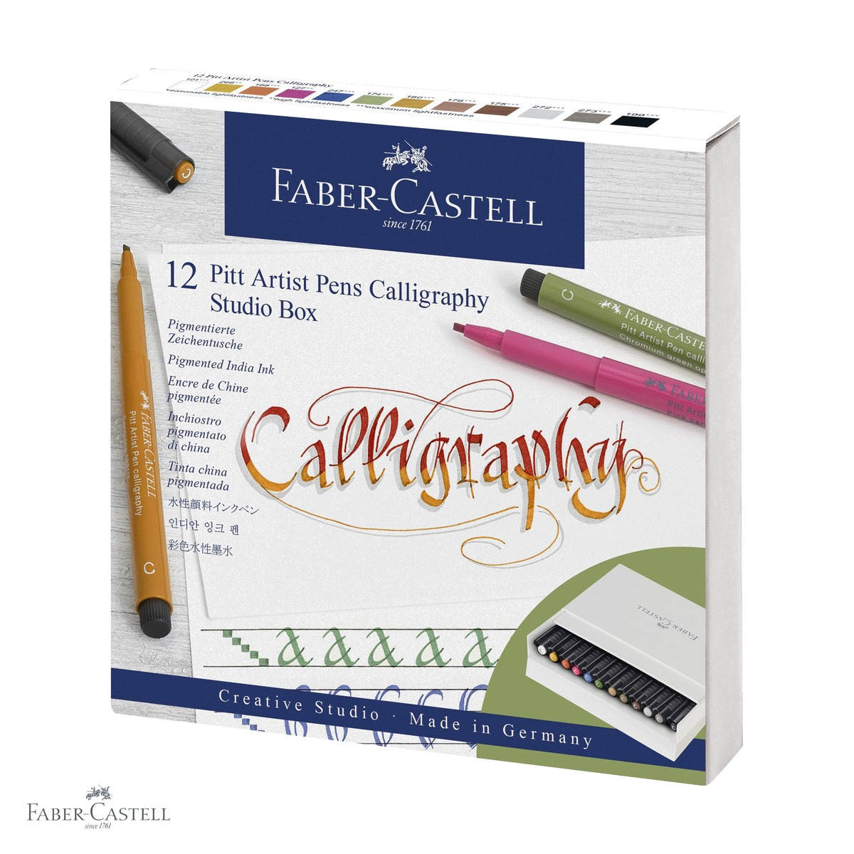 Set 12 markere caligrafice Faber-Castell Pitt Artist Pen, varf caligrafic, cutie studio pentru artisti