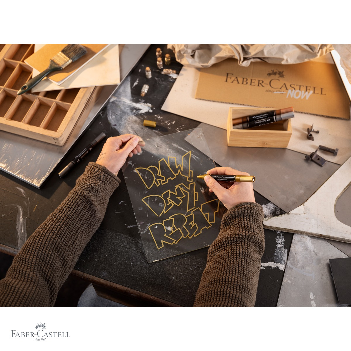 Markerele acrilice Multimark de la Faber-Castell ofera o serie de avantaje clare fata de produsele similare de pe piata. In primul rand, cerneala pe baza de apa este mai prietenoasa cu mediul inconjurator si mai usor de curatat de pe maini sau suprafete nedorite atunci cand este inca proaspata. Efectul metalic opac asigura o vizibilitate excelenta chiar si pe suprafete intunecate, oferind un contrast puternic si un aspect profesional. Indicatorul de nivel al cernelii este un plus practic, permitandu-ti sa stii intotdeauna cand este momentul sa inlocuiesti markerul. Varful dublu elimina necesitatea de a folosi mai multe instrumente pentru acelasi proiect: poti trece rapid de la acoperirea unor zone mari la trasarea unor linii subtiri si precise, fara intreruperi. Calitatea Faber-Castell, recunoscuta la nivel international, garanteaza o experienza de utilizare fluida, cu flux de cerneala constant si uniform.