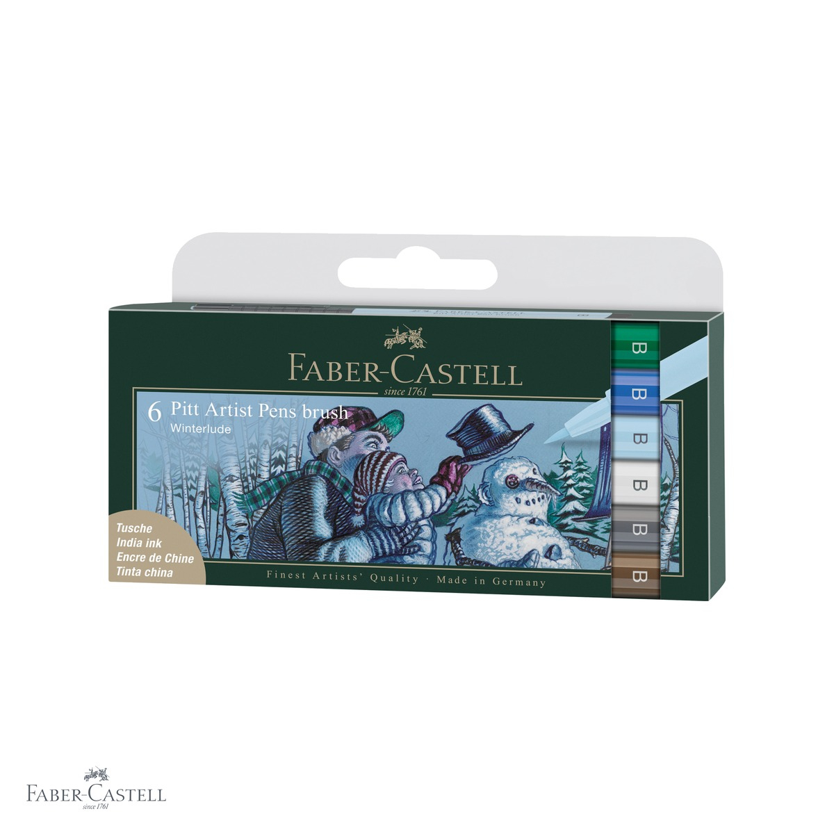 Markere profesionale cu pensula Pitt Artist Pen - Set 6 culori Iarna 2022, Faber-Castell