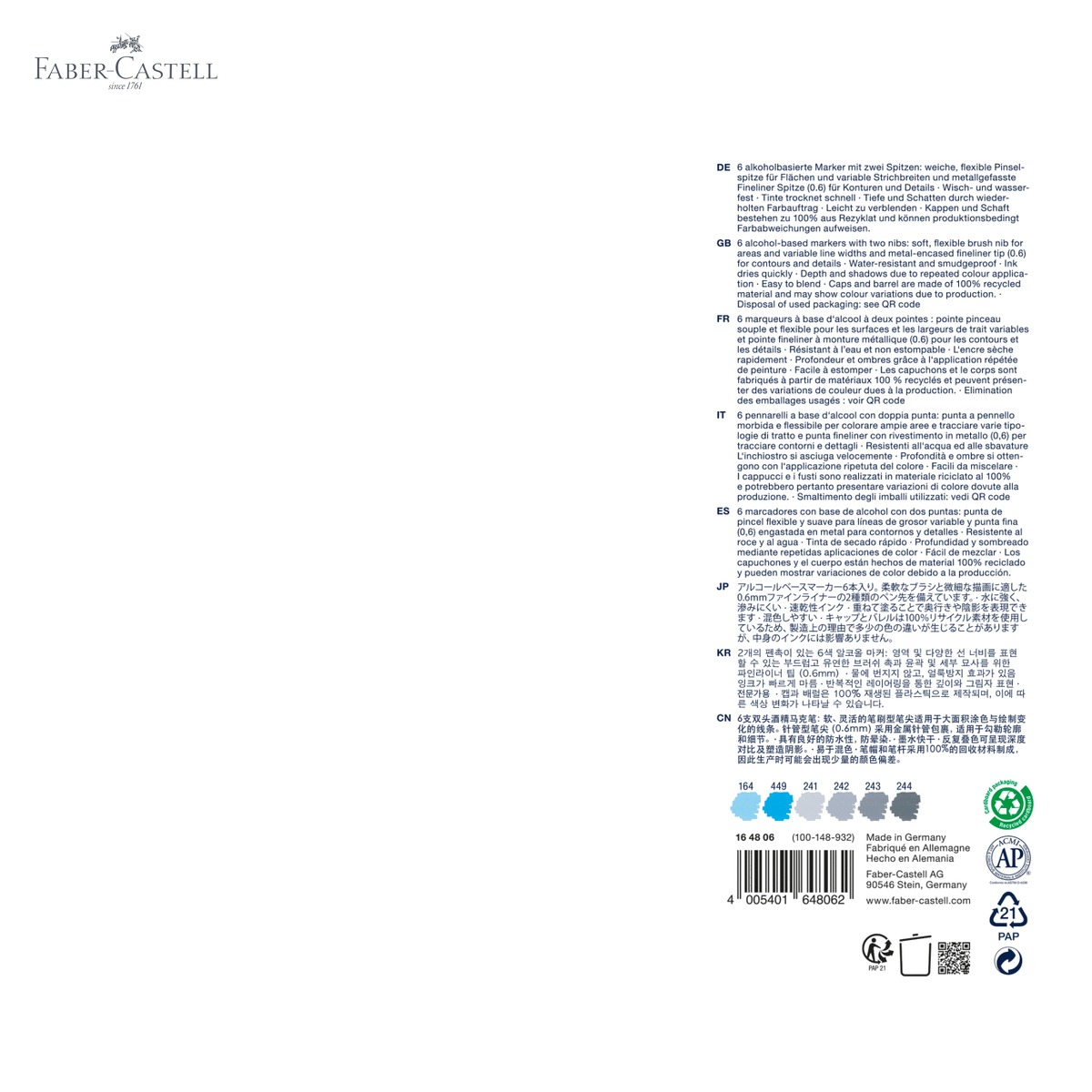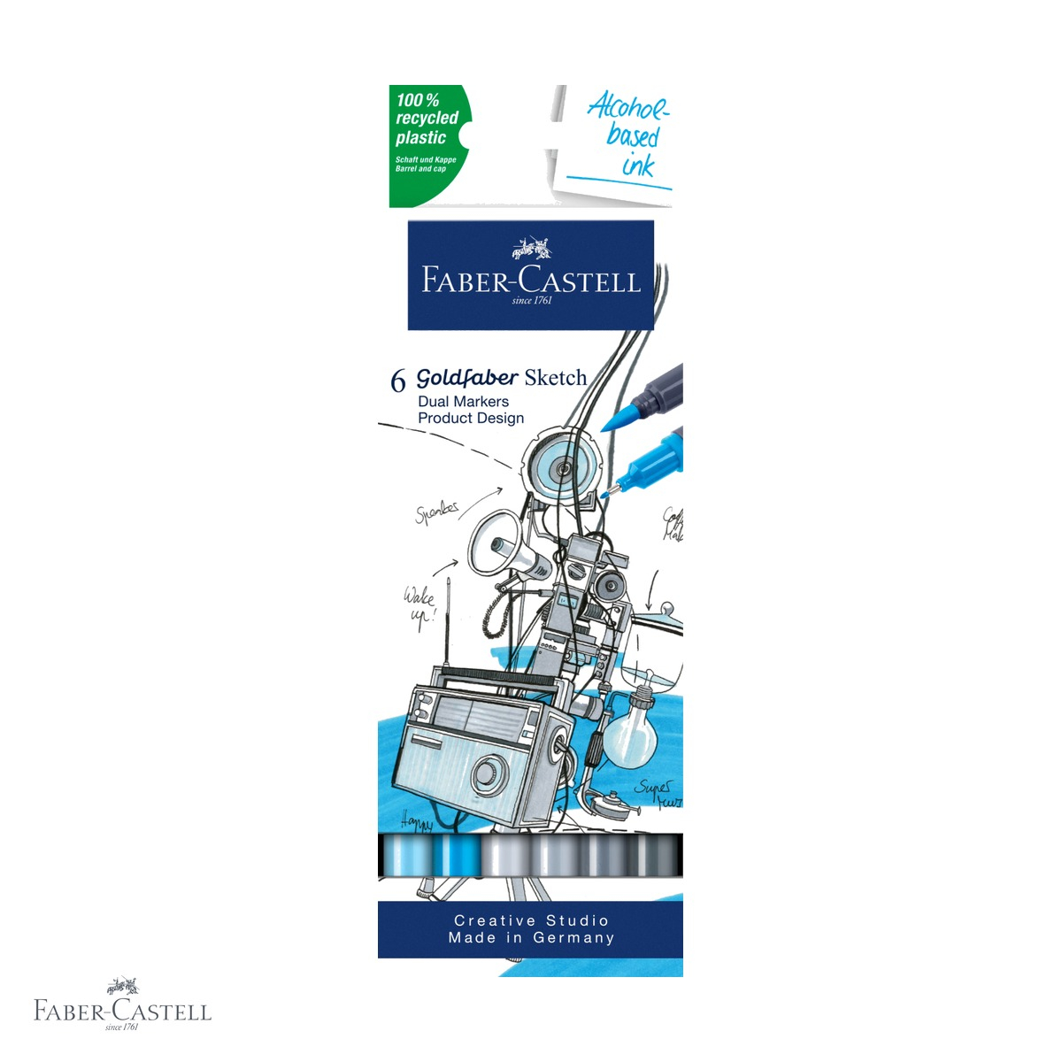 Indiferent daca esti un designer profesionist care lucreaza la machete complexe sau un artist pasionat care vrea sa-si exprime creativitatea, ai nevoie de instrumente de incredere care sa tina pasul cu ideile tale. Setul de 6 sketch markere Goldfaber de la Faber-Castell raspunde exact acestei nevoi: iti ofera precizie, versatilitate si culori vibrante intr-un singur instrument cu doua capete. Cu cerneala pe baza de alcool si doua varfuri distincte, poti trece fara efort de la linii fine si detalii precise la suprafete largi colorate sau efecte de pensula, totul cu un singur marker. Produsul este totodata o alegere responsabila fata de mediu, corp si capace fiind fabricate din material plastic 100% reciclat.