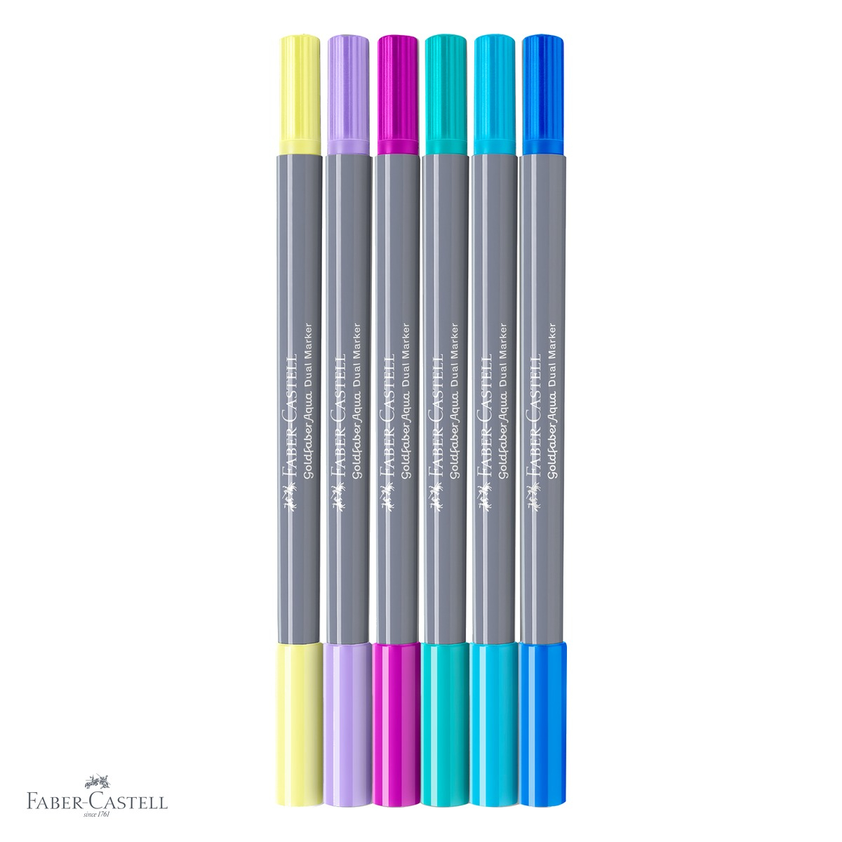 Set 6 markere solubile cu 2 capete Faber-Castell Goldfaber, colectia Tropical, pentru pictura si desen artistic