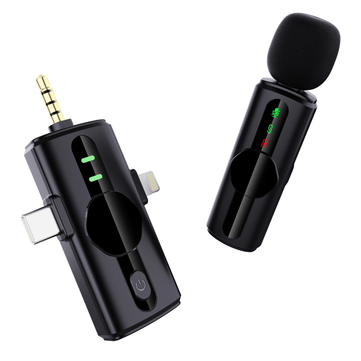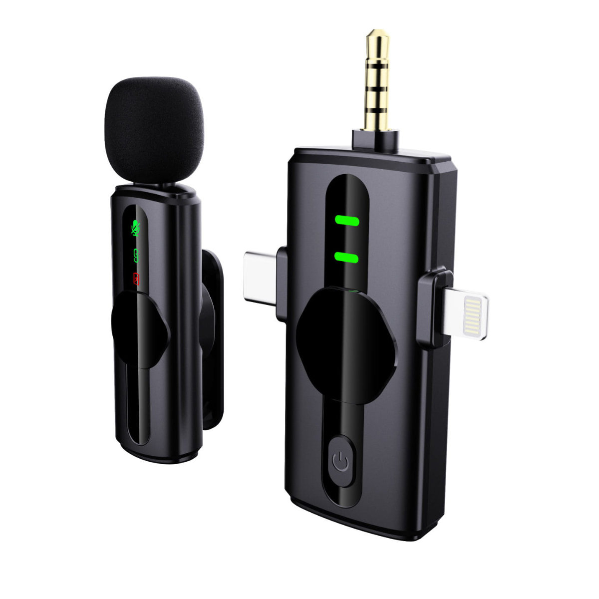 Microfon Wireless Profesional 2.4G - Set Cu Receptor Universal (USB-C, Lightning, 3.5mm) pentru Vlogging, Streaming si Inregistrari