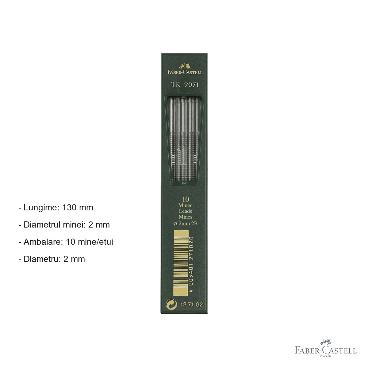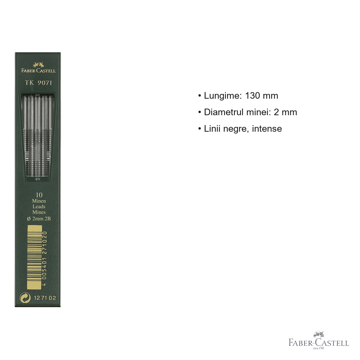 Aceste mine sunt recomandate in mod special pentru utilizarea cu creioanele mecanice Faber-Castell TK 4600, TK 9400 si TK 9500. Inainte de a introduce o mina noua, asigurati-va ca mecanismul creionului este curat si functional. Pentru a prelungi durata minei, evitati presiunea excesiva pe hartie si pastrati unghiul de scriere sau desen la aproximativ 45-60 de grade.