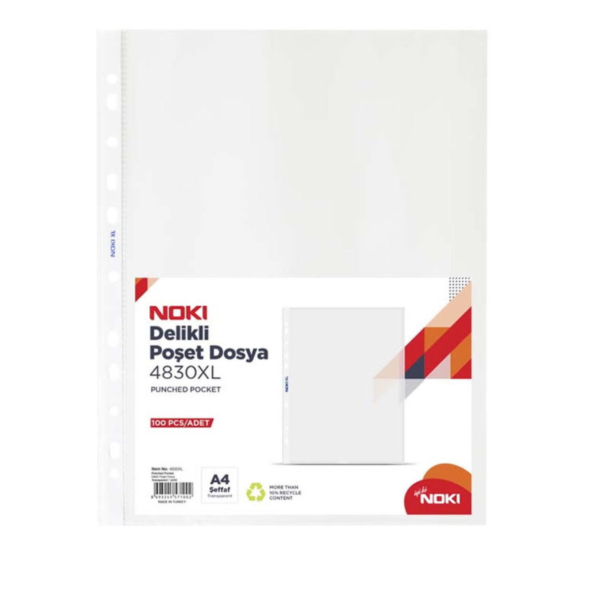 Set 100 folii de protectie A4 XL cu deschidere superioara, 55 microni, Noki 4830XL, suprafata orange peel, perforate