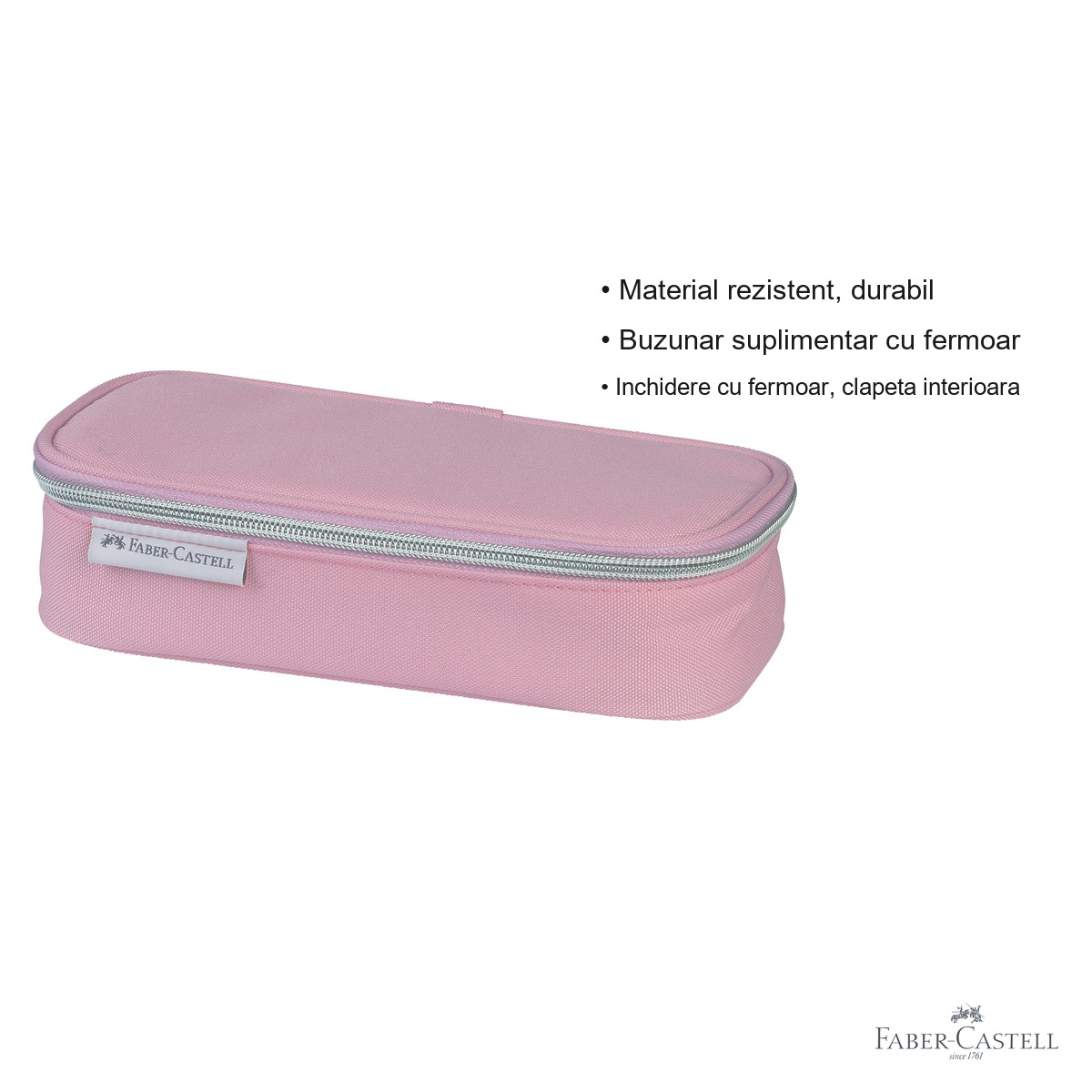 Penarul oval Faber-Castell Rose Shadow 2024 combina functionalitatea cu estetica, oferind utilizatorului o experienta placuta de organizare. Spatiul generos din compartimentul principal permite depozitarea unui numar mare de pixuri, creioane, foarfece si alte instrumente de scris, fara inghesuiala. Buzunarul suplimentar cu fermoar ofera un loc dedicat obiectelor mai mici sau mai importante, precum cartele, radiere sau agrafe, reducand riscul de a le pierde. Clapeta interioara adauga un nivel suplimentar de organizare si protejeaza continutul penarul in timpul transportului. Materialul rezistent si durabil asigura o viata lunga produsului, chiar si in conditiile utilizarii zilnice intense specifice mediului scolar. Design-ul modern din colectia Rose Shadow 2024 face din acest penar un accesoriu de stil, apreciat atat de elevi, cat si de adulti.