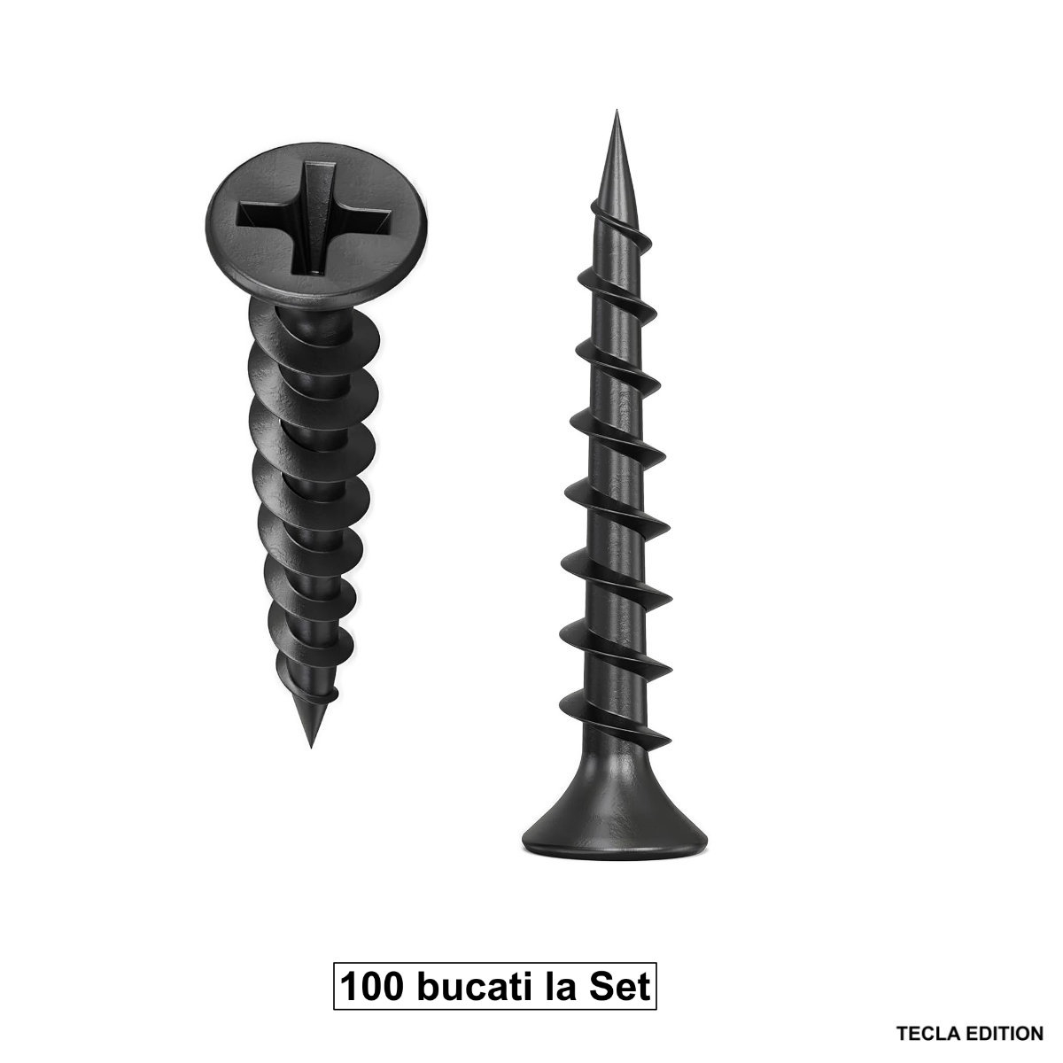 Set 100 Suruburi autofiletante pentru gips-carton, 3.5x45 mm, filet rapid pentru lemn, cap inecat PH2, otel fosfatat