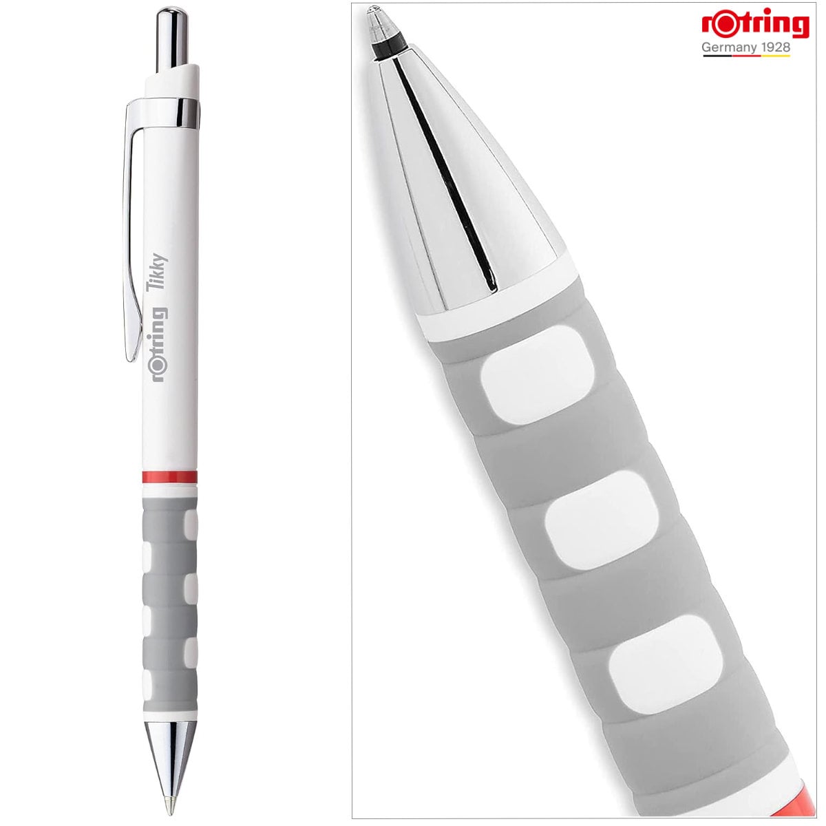 Pix Tikky 3 Alb cu Clip, Mina Jumbo Albastra 0.7mm, Grip Ergonom din Cauciuc, pentru Scriere Extensiva, Rotring