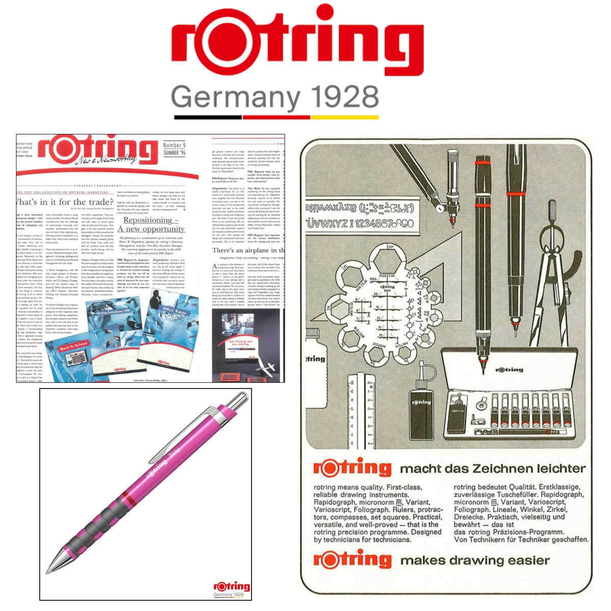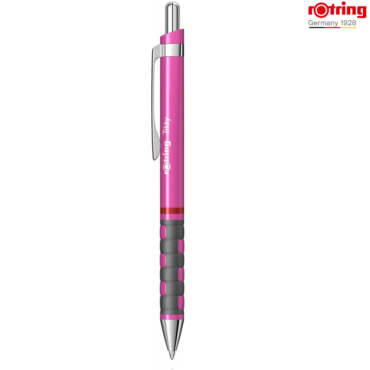 Pix Tikky 3 Roz Neon cu Clip, Mina Jumbo Albastra 0.7mm, Grip Ergonom din Cauciuc, pentru Scriere Extensiva, Rotring