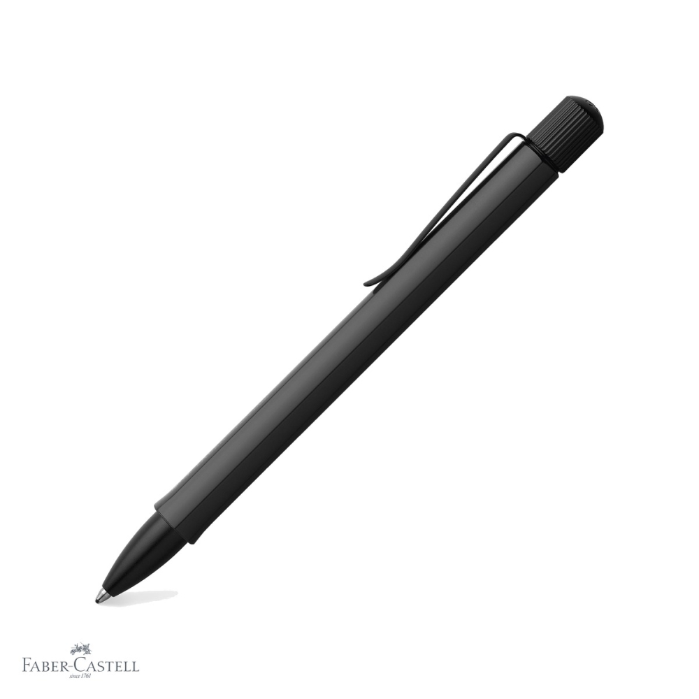 Pix premium Faber-Castell Hexo cu corp si capac hexagonale din aluminiu negru. Grip ergonomic pentru scriere confortabila, potrivit atat dreptacilor cat si stangacilor. Mecanism rotativ cu mina neagra de grosime B, fabricat in Europa.