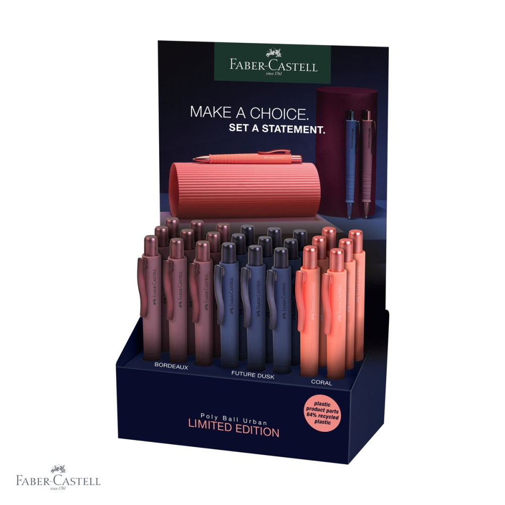 • Continut display: 24 de pixuri cu mecanism Poly Ball XB Urban Faber-Castell