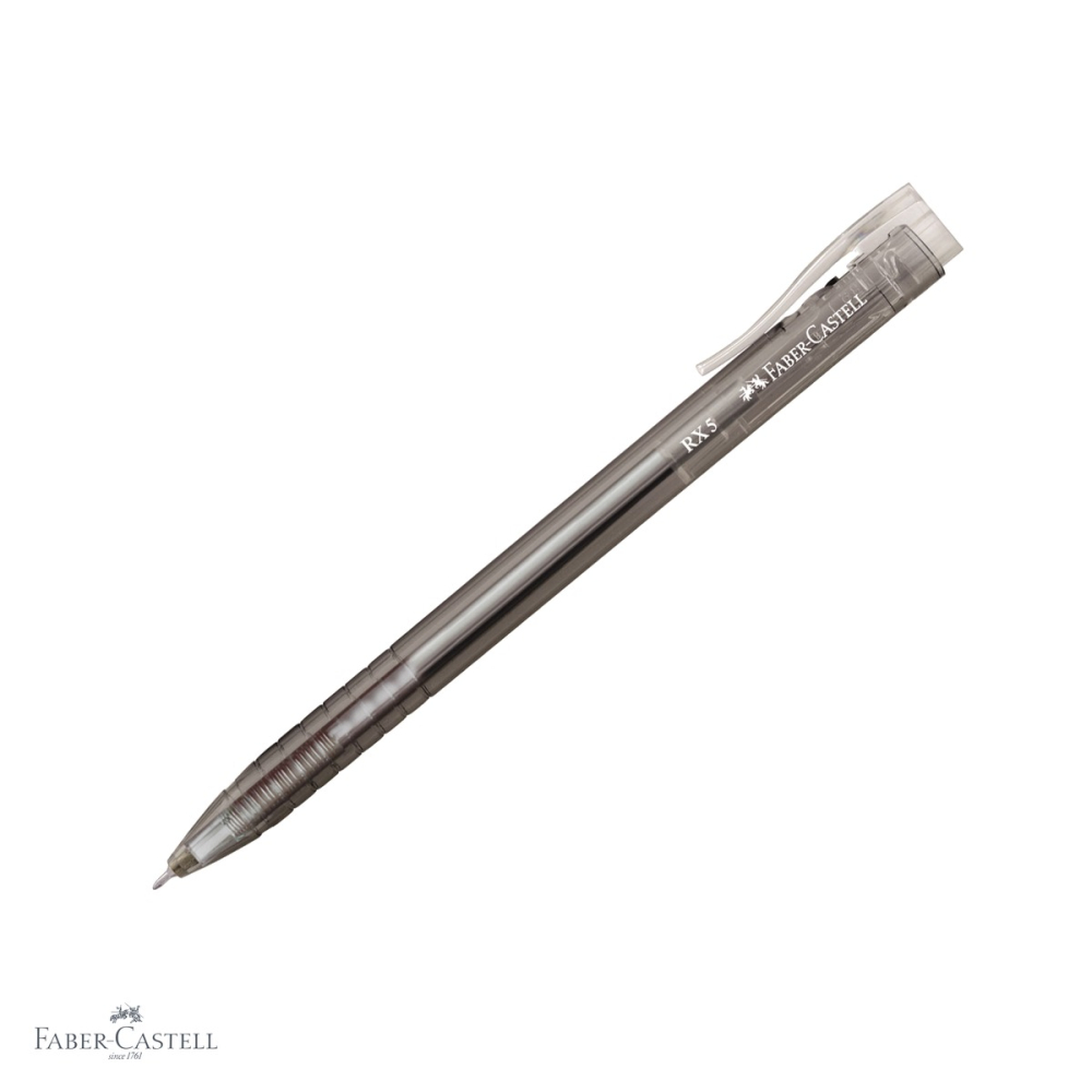 Pix retractabil Faber-Castell RX5 cu cerneala semi-gel rezistenta la apa si varf needle de 0.5 mm pentru o scriere precisa si confortabila. Corp triunghiular ergonomic, clip alb, culoare negru.
