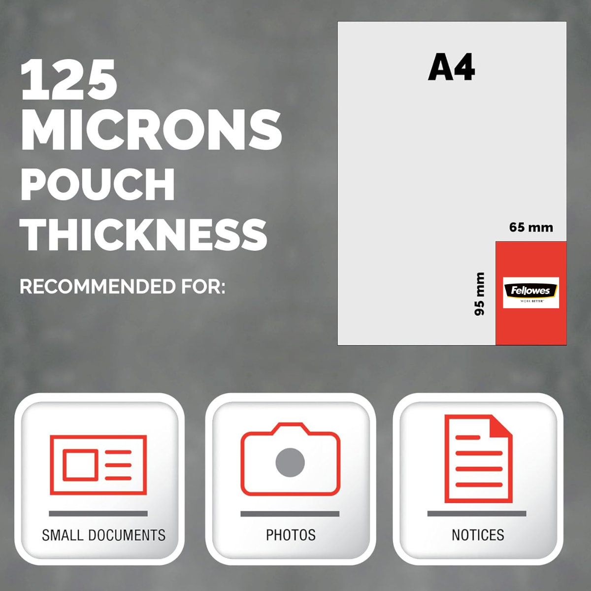Fiecare fata a foliei are o grosime de 125 microni . Grosimea totala a documentului dupa laminare va fi de aproximativ 250 microni (2 x 125 microni) plus grosimea hartiei din interior .