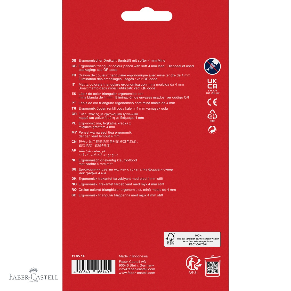 Set 18 creioane colorate triunghiulare Faber-Castell Ergonomics, mina 4 mm, pentru copii
