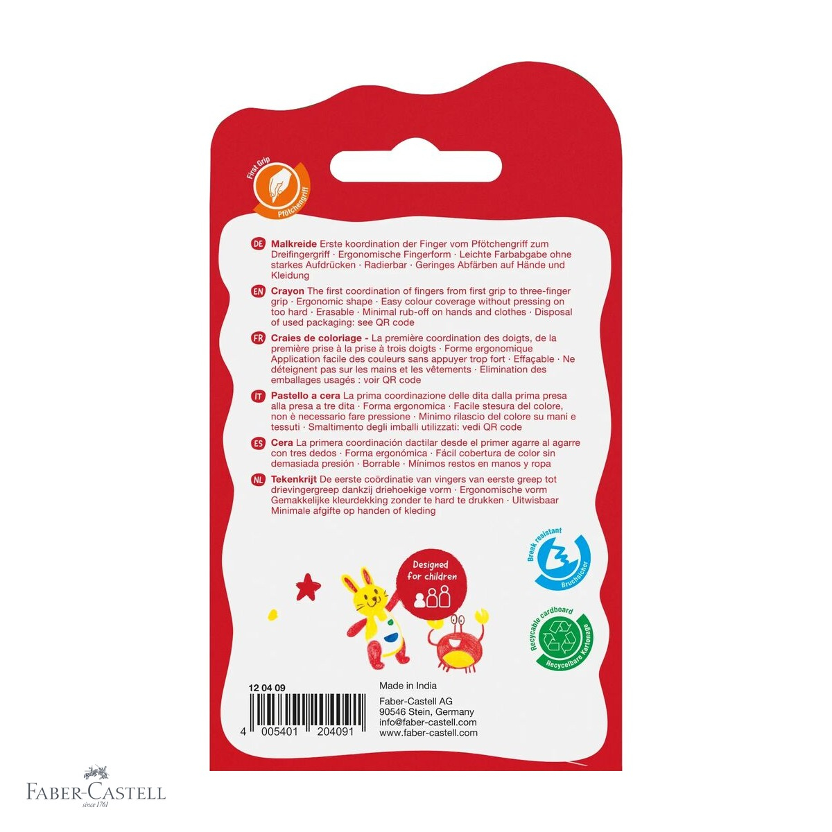 Unul dintre cele mai mari avantaje ale acestui set Faber-Castell este designul ergonomic in forma de degete, care face ca prinderea creionului sa fie naturala si confortabila chiar si pentru cei mai mici copii, care inca nu au dezvoltat priza standard pe un creion conventional. Acest lucru reduce oboseala mainii si incurajeaza copilul sa petreaca mai mult timp colorand si explorand culorile.