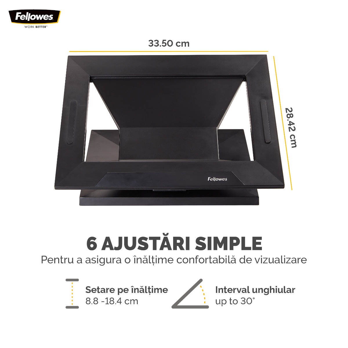 | Birou corporate | Ridicarea laptopului la nivelul ochilor pentru angajații care lucrează exclusiv pe laptop, prevenind durerile de gât și spate |
