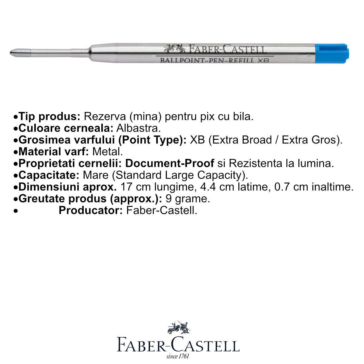 XB (Extra Broad) este cu un pas mai gros decat B (Broad). Lasa cea mai groasa si mai plina linie din gama Faber-Castell, oferind impact vizual maxim. Este ideala pentru semnaturi foarte bold sau pentru utilizatori care prefera un scris extrem de generos.