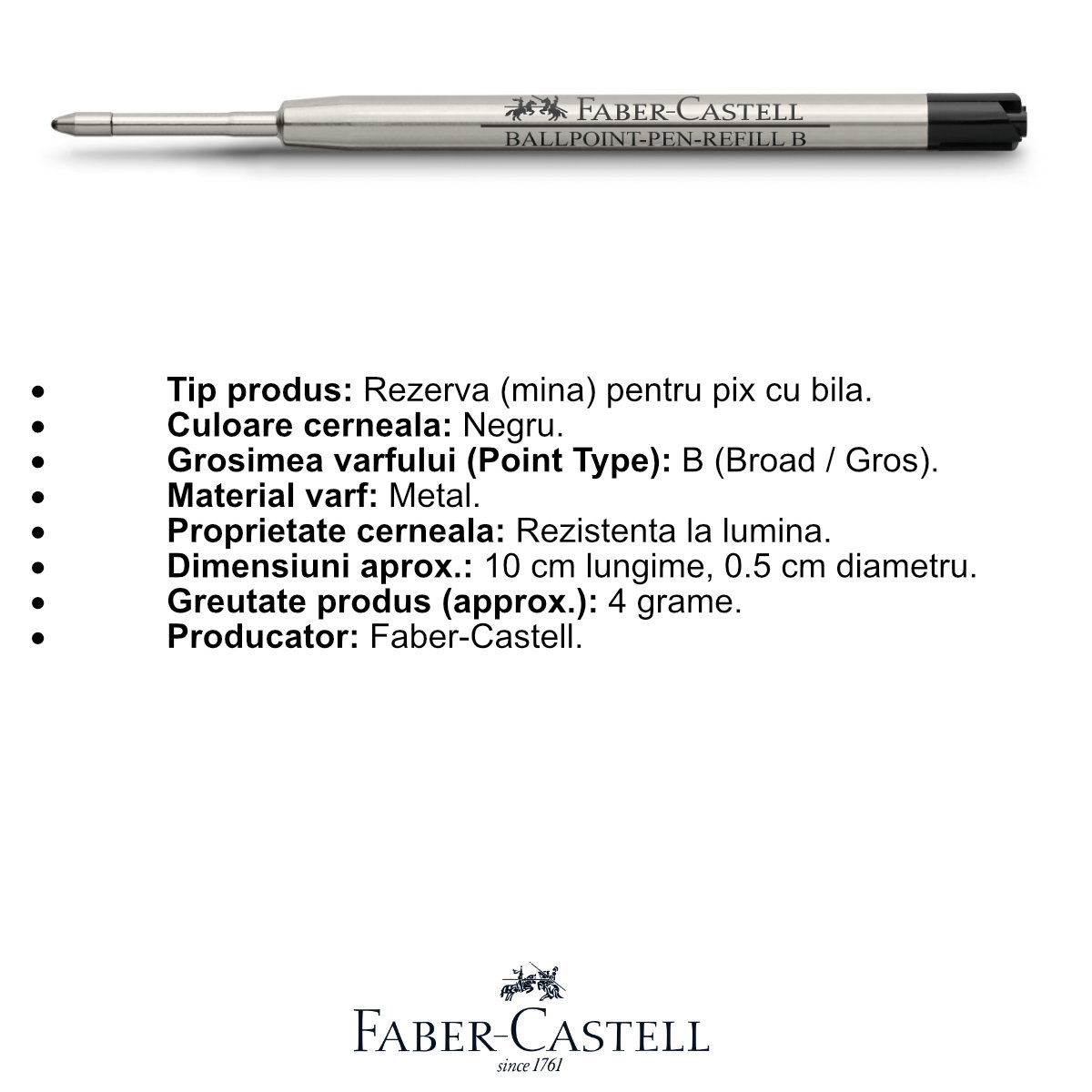 Rezerva Neagra pentru Pix Faber-Castell, Varf Metalic B, Capacitate Mare, Pentru Semnaturi si Evidentiere