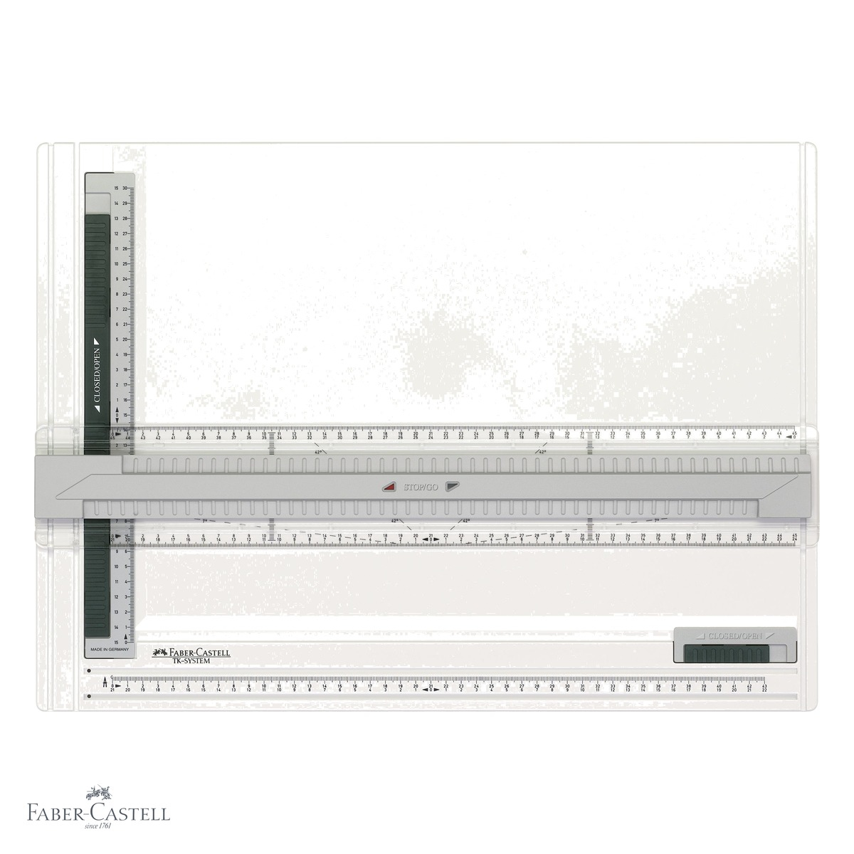 Planseta de proiectare A3 Faber-Castell TK-System se distinge prin mai multe avantaje clare fata de plansetele obisnuite. Fixarea dubla a teului elimina erorile de deplasare neuniforma, asigurand linii perfect paralele si precise. Sistemul STOP / GO permite utilizatorului sa blocheze teul instantaneu, fara a pierde aliniamentul stabilit, economisind timp si efort in sesiunile lungi de proiectare. Clema de fixare este extrem de practica: poti atasa rapid una sau mai multe foi de hartie fara a folosi banda adeziva sau alte mijloace suplimentare, pastrand hartia bine fixata pe toata durata lucrului. Greutatea redusa si constructia din plastic dur fac din aceasta planseta un instrument usor de transportat, dar in acelasi timp rezistent la uzura zilnica. Punctele din cauciuc de pe spatele plansetei previn alunecarea pe birou sau pe masa de lucru, oferind stabilitate chiar si in conditii de lucru intense. Nu in ultimul rand, teul universal o face accesibila tuturor utilizatorilor, indiferent de mana dominanta, ceea ce este un avantaj major intr-un mediu educational sau profesional variat.