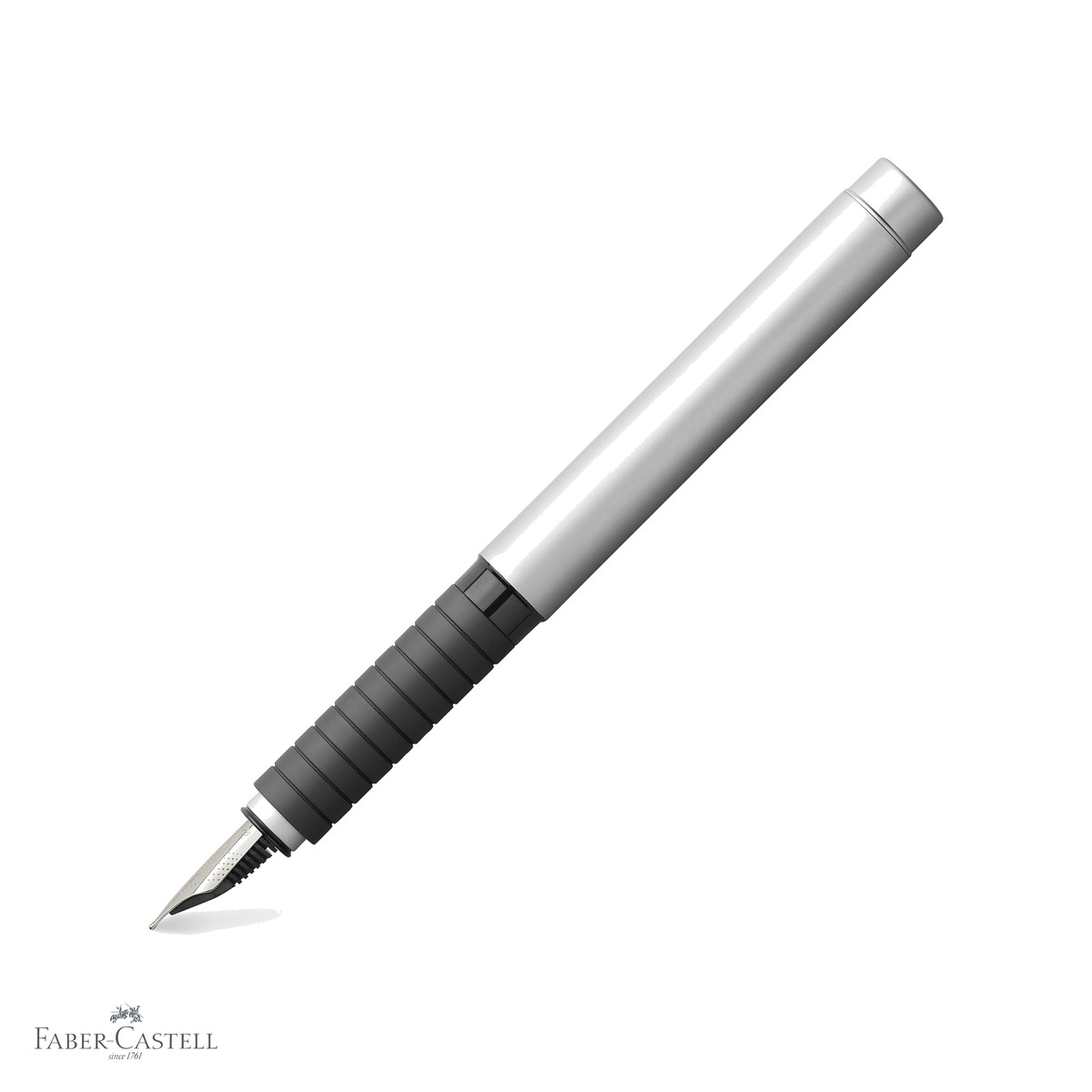 Stilou Faber-Castell Basic Metal, corp metalic cromat mat, penita otel inoxidabil M, pentru scris de calitate