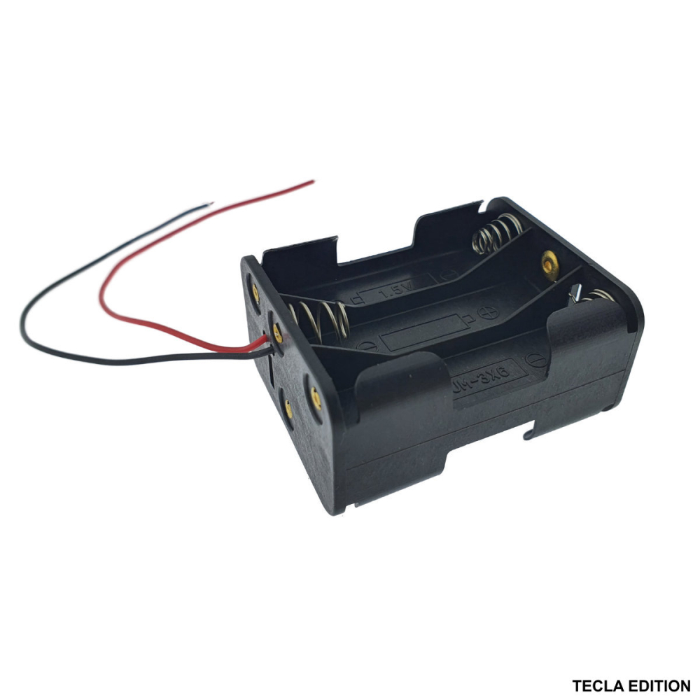 Bateriile AA au o capacitate mult mai mare decat bateriile 9V (6F22). De exemplu, o baterie AA alcalina poate avea 2500 mAh, in timp ce o baterie 9V are doar aproximativ 500-600 mAh. Astfel, acest suport cu 6 baterii AA iti ofera o autonomie de 4-5 ori mai mare, ideal pentru proiecte care trebuie sa functioneze mult timp.